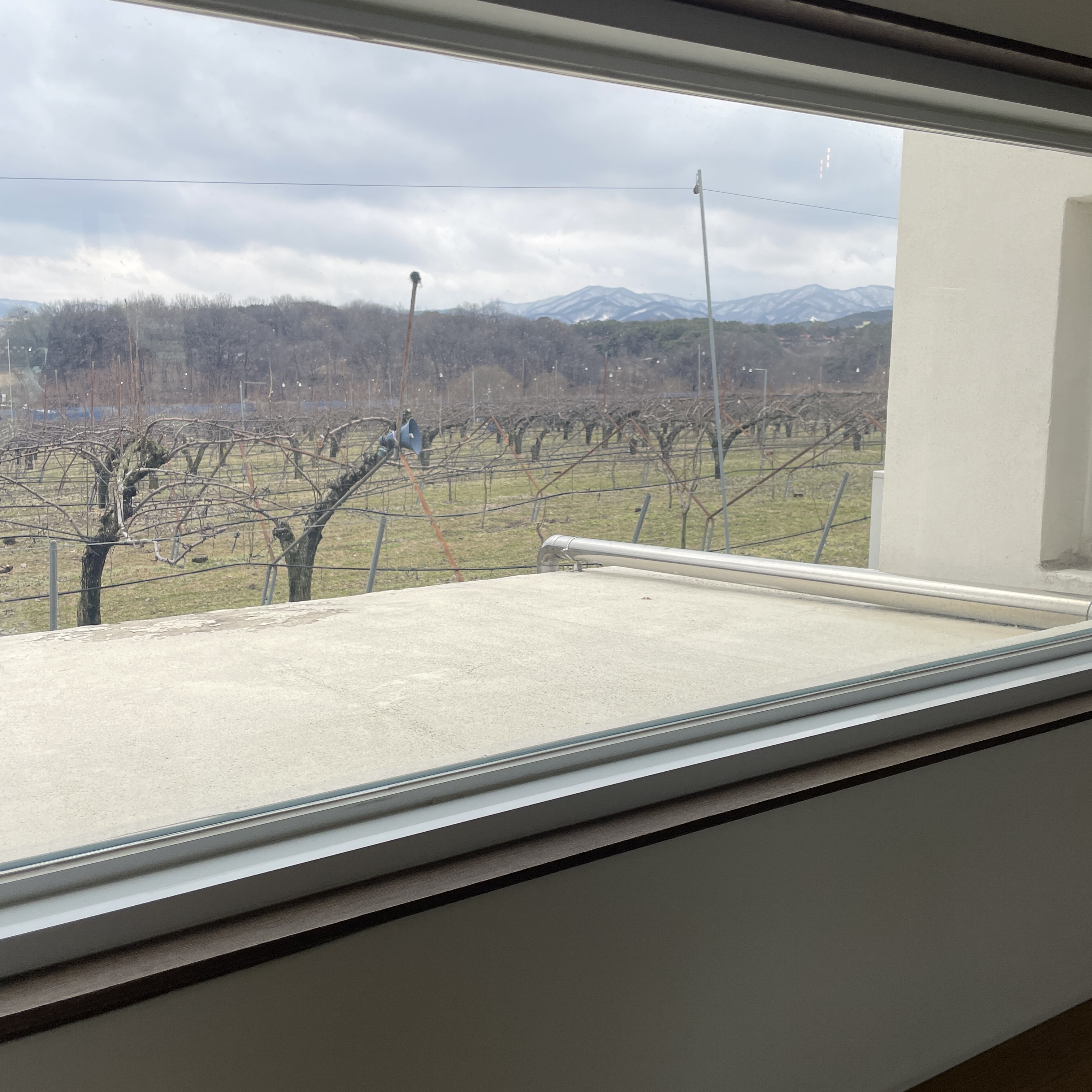 우중충한 하늘이지만 . 설산뷰와 과수원뷰가 멋진곳.
