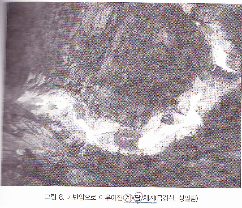 하상경사가 3~5%보다 큰 산지하천에서는 거력들이 제방처럼 쌓인 계(step)와 그 아래에 형성되는 담(pool)이 연속하여 교대로 나타난다. 계를 구성하는 물질은 국지적인 공급과 운반 조건에 따라 다르지만 거력과 자갈들로 이루어지는 것이 보통이며 숲이 우거진 곳에서는 통나무가 가로놓여 있기도 하고 기반암으로 형성될 수 도 있다. (그림8)