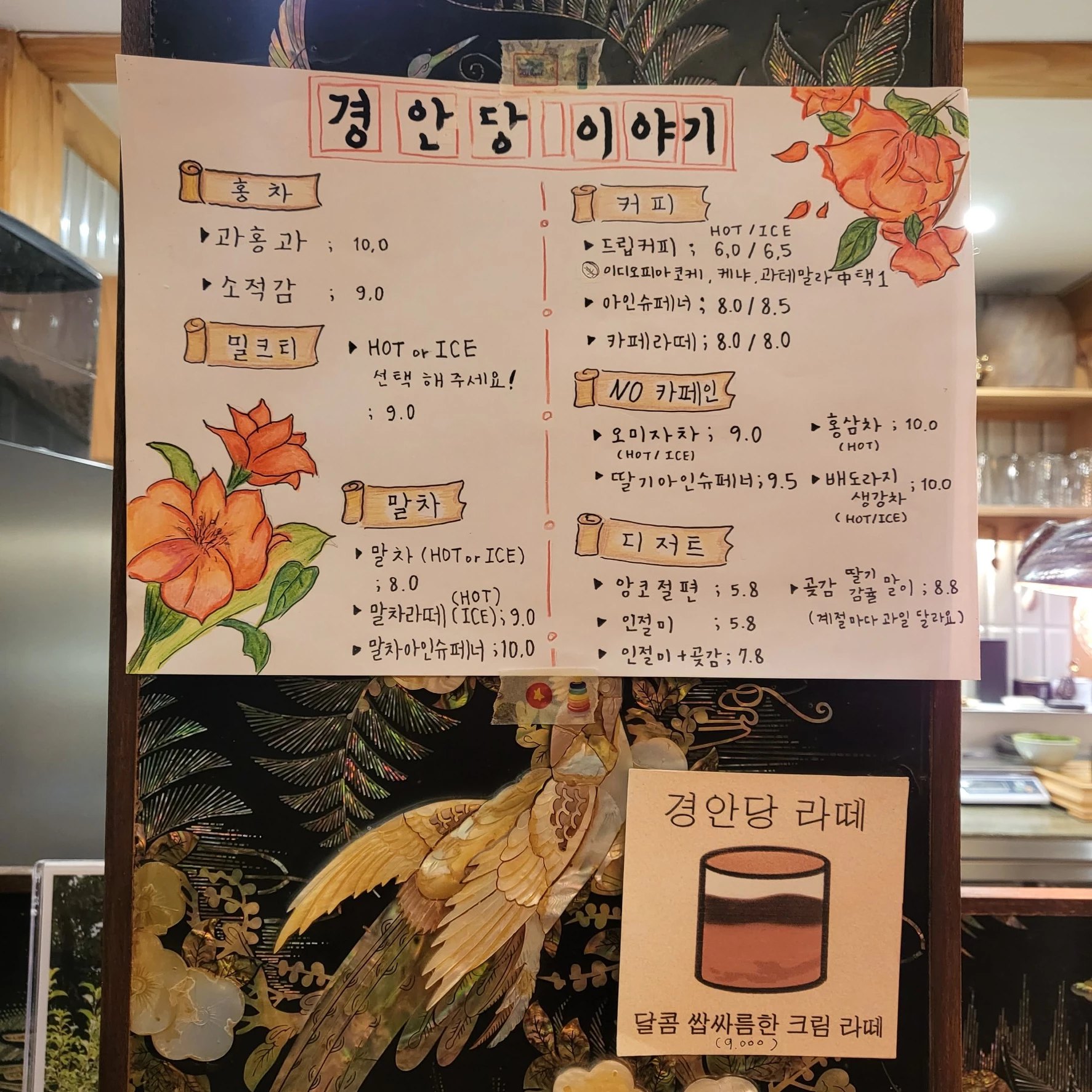 홍차나 밀크티나 말차 커피 등등이 메인인 곳.