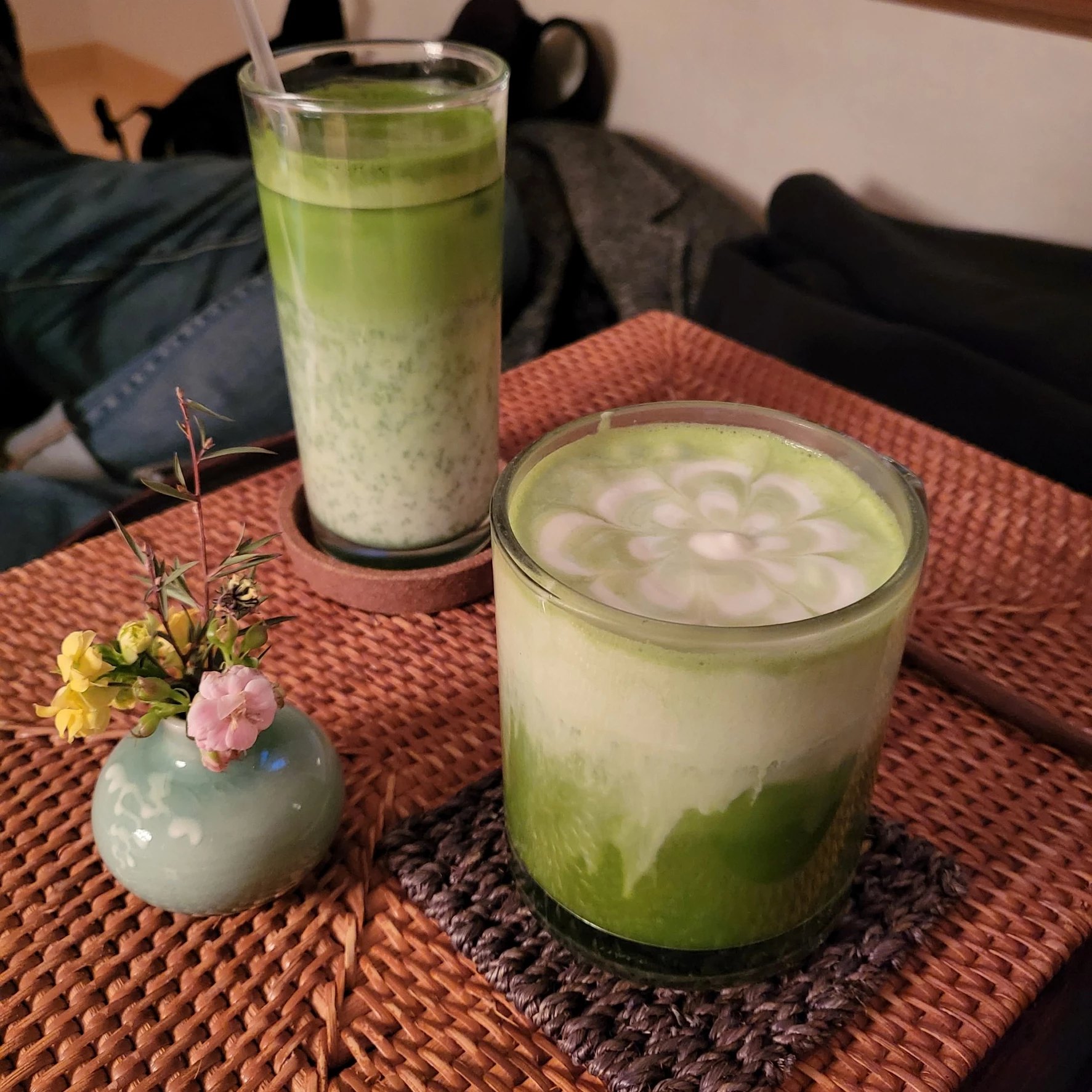 우린 말차라떼와 말차 아인슈페너를 주문했다.